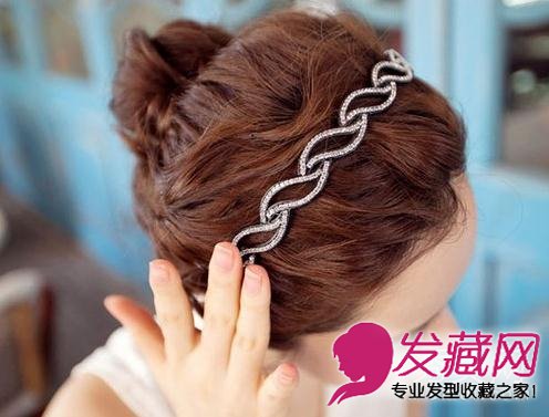将马尾束成侧边的丸子头,搭上发簪,刘海不要太整齐,打造迷人田园风。