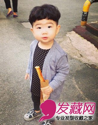 小小男子汉留着短烫发,短俏的刘海,卫衣装扮清新十足,喜感的刘海表情,看上去可爱又吸睛。