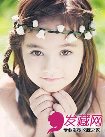 披肩发型怎么扎,顺着刘海往两边编辫子,花环点缀,加上棕色染发,白嫩的清纯小脸格外惹人怜爱。