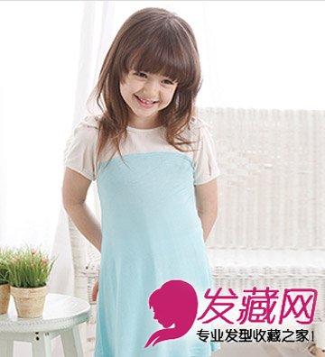 一款很简单的中长发发型,“懒妈妈”们可以为自家的小公主选择这款发型,只是将发梢微微打碎,再留一个整齐的刘海就OK了,呆萌且淑女的气质就出现了。
