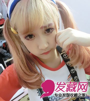 日系风双马尾辫扎发,适合小萝莉的一款可爱发型,中长发扎双马尾,搭配浅色系的染发衬托出白嫩肤色,清新可爱。