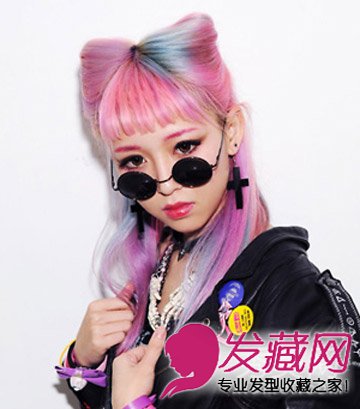很有日系原宿风格的一款超可爱米奇头扎发造型,糖果色染发设计的长发扎蝴蝶结,搭配修剪的齐刘海修颜,甜美可爱的动漫发型。