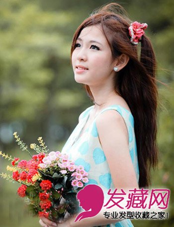 学妹就该把发型扎的萌萌的,微卷的长发,发间取一小撮头发用发饰扎起来,可爱俏皮的苹果头非常甜美显嫩哦。