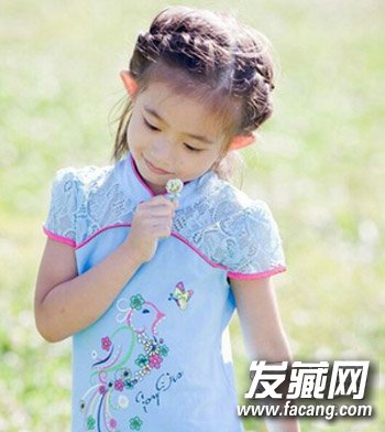 适合春夏季辣妈们给小公主们打理的一款精致编发发型,侧分的长发编露额的刘海编发造型,简单扎发清凉干净。