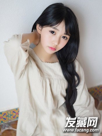 很有软妹子气息的一款韩国学生发型,简单的侧边蓬松编发发型很有修颜显嫩的效果,简单的蓬松感扎发搭配刘海修颜甜美清新。