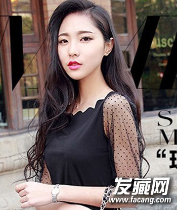 大幅度的一九分偏分造型设计将女生精致的五官与娇小的脸型完美的呈现出来,再配合这种清新飘逸的及腰长卷发更添90后十足的优雅妩媚风。