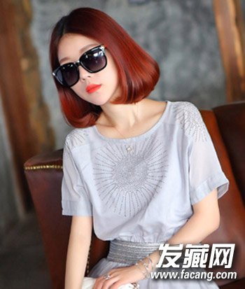 时尚的酒红色染发设计可是最显女生十足的潮流气质感了,再配合这种简单的中分中短发内扣波波头造型更添十足的优雅气质风,很适合职场90后女生的发型设计。