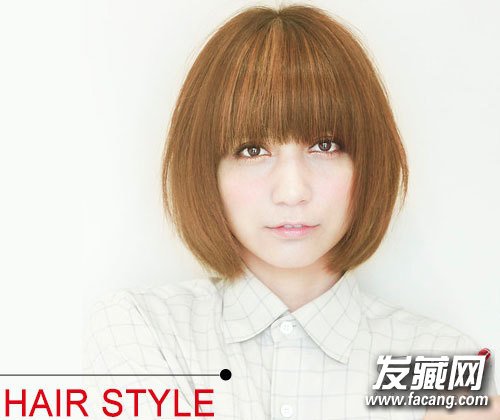 娃娃脸的女神通常面部两侧比较丰满,这款金色的齐刘海波波头发型,正好可以遮盖babyface,而且发色有光泽,看起来十分动感精神,搭配粉粉的娃娃脸,超级可爱。