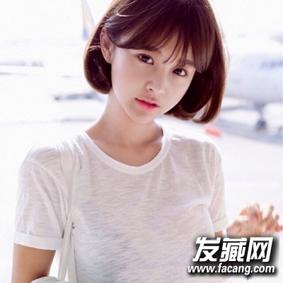 2015年的夏季,瘦小的女生适合什么发发型呢?炎热的夏天,不妨试试这款齐刘海的短发造型吧,金桐色的发色,搭配白皙红润的笑脸,清爽甜美又可人。