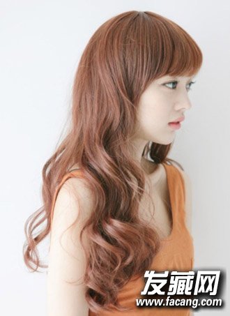 什么样的发型既显时尚感,打理起来也相对容易呢?这款棕色系的齐刘海披肩卷发发型,微卷的头发,自然的散落在胸前,搭配萌甜的表情,时尚清甜两不误。