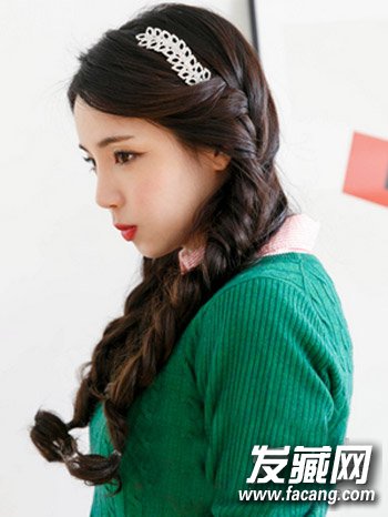 可爱呆萌的一款编发发型,从侧面看来不仅时尚而且整个造型的扎发也显得颇为简单而且时尚不,侧边的发饰的点缀简单而且时尚。