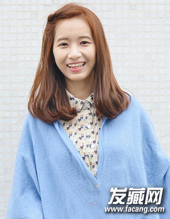 妹纸们要是对自己的脸型有十足的信心的话可以来看看这第一款可爱感十足的简单无刘海发型,利用一个简单的发颊将额头的头发固定,再配合温暖的棕黄色染发与时尚的中偏发中长发更显可爱甜美风。