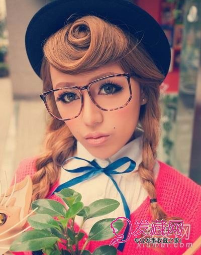 值得推荐给你的双马尾发型,卷卷的上扬刘海,个性突出;可爱的麻花辫的发尾是蓬松的小卷发,可爱活泼;搭配豹纹的镜框,十分的俏皮可爱哦!