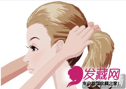 将头发扎成马尾,马尾的重心控制在耳廓上沿的平行位置。