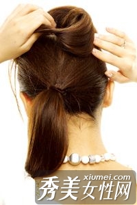 先抓两侧适量发束绑成公主头。尽量要绑的稍微高一点。