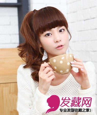 齐刘海体现的是萌感,歪扎的马尾营造的是俏皮感,韩式发型两者的结合将小女生甜美与可爱的气质体现的淋漓尽致。