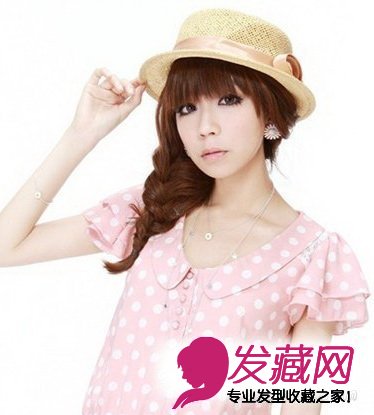 将头发打造出侧扎的松散麻花辫造型,甜美优雅。采用深栗色的染发,颇具时髦,非常有质感,整齐的刘海凸显出了一双大大的眼睛,编织帽子的搭配是春季出游踏春最好的单品。