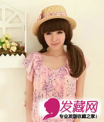 双马尾彰显出可爱俏皮的气息,搭配整齐的平刘海,年轻的气息一触即发,,搭配一顶编织帽,很有田园的风味,十分的浪漫柔美,很是适合跟你亲爱的他出街游玩哦!