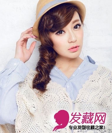个性马尾:整个造型都是小编强烈推荐的发型,将卷发发型扎成一个螺旋卷马尾,随性自然,而且刘海的设计也是别具匠心,帽子的搭配又让整个造型有着英伦范呢!