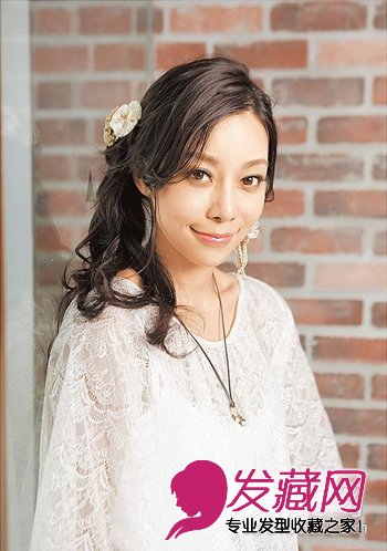 利用发辫收整发丝,斜垂马尾搭配耳环更添时尚味。
