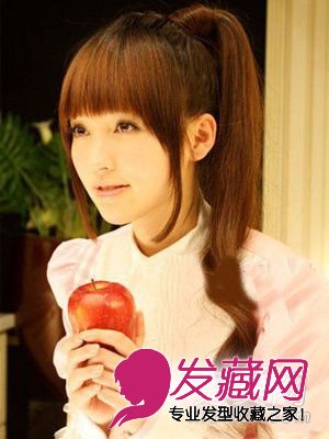 在高扎直发马尾的基础上,在发尾部分增加螺旋卷元素,能让马尾不显土气。简洁清爽的长发马尾发型,以及拥有长侧发的弧形减龄齐刘海,演绎东方少女的清秀感。