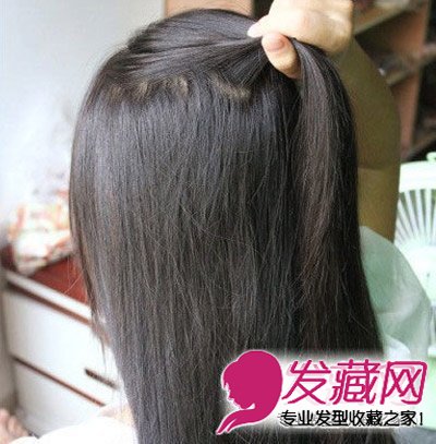 1.从发顶取少量秀发,最好发际线清晰一些,这样不会显得凌乱而破坏了整体造型。