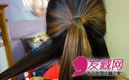 气质马尾发型步骤二:将下面的头发分开均匀的两等份,然后提起一边的头发。