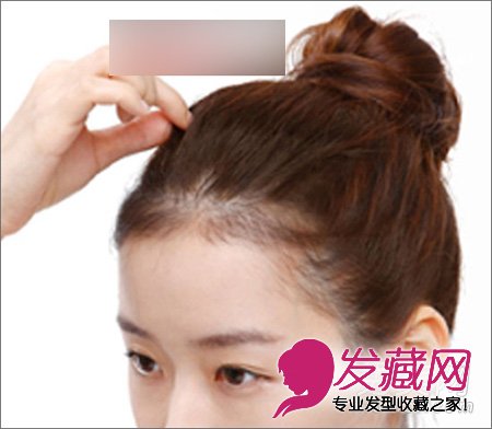 为了自然地收尾,少量抓取发顶的头发,抓蓬松一些。