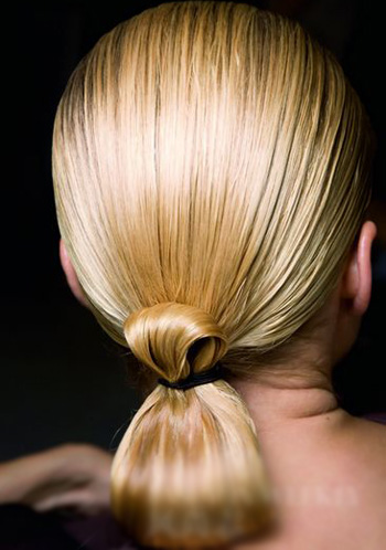 Step3 在整个马尾上喷上顺发喷雾,让它看起来更具光泽感。