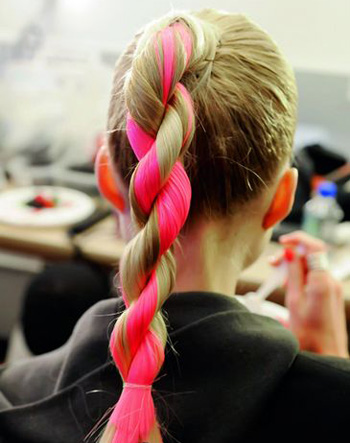 要想让马尾打破成规,最简单的办法就是编成麻花。在发辫中加入几缕彩发,马尾立马变得灿烂起来。