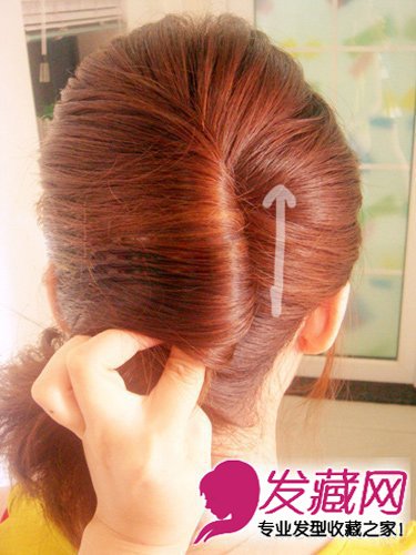 卷好之后,从里面按住,整体往上推。手要紧噢,不然头发就会散开了。
