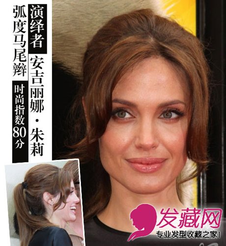 安吉丽娜为我们展示的这款弧度马尾辫发型,能够让你散发十足的女人味,特别 适合长脸型的人。把刘海中分之后,其他的部分的头发绑成常见的马尾辫发型,最后 是使用大号的卷发棒把两边的长刘海稍微的往后卷一卷就可以了。如此简单好难看的 马尾辫发型,你怎么错过。