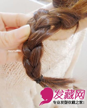 步骤5:编到最后,右边没有头发加的时候,就按麻花辫的编发编,编完,用皮筋固定。