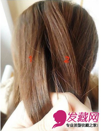 取出头顶两股头发,开始编麻花辫。