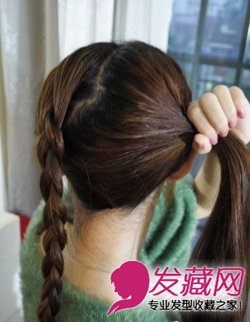 第三步:将其余的头发偏到右侧耳边的位置扎成一个马尾造型。