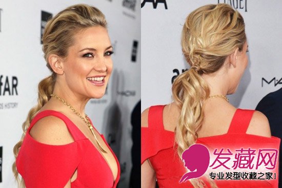 没有沙滩款造型的发型秀根本算不上是夏日发型秀,这里要介绍的就是hiippie-chic潮中的女王款。Hawkins提醒大家“这款造型中最关键的就是头发的质感,所以拿出你最爱的海盐喷雾吧”,在头发还有些湿湿的时候喷上喷雾,开始干的时候,用手把头发梳到后面,绑一个低马尾(可以使用橡皮圈)。用小发夹把所有松散头发固定,并喷上干发喷雾做定型。因为沙滩造型并不是一款非常光亮顺滑的发型,所以建议选择无水配方的喷雾,或者在喷的时候把瓶子离头发远一些,从而打造干爽的效果。