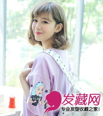 亚麻色的短卷发个性感十足,不过对于韩国MM来说显得非常流行,宽松T恤,双肩包非常的学院系。