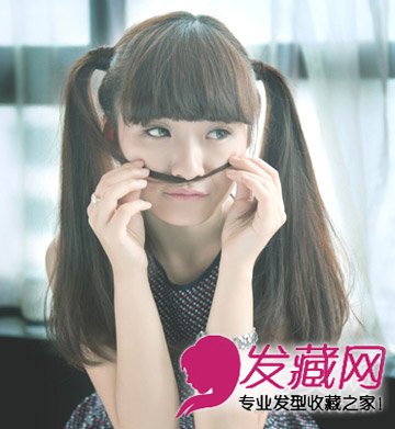乖巧可爱的双马尾扎发,厚厚的齐刘海设计,很好的修饰脸型,柔顺的秀发披散下来,甜美浪漫。