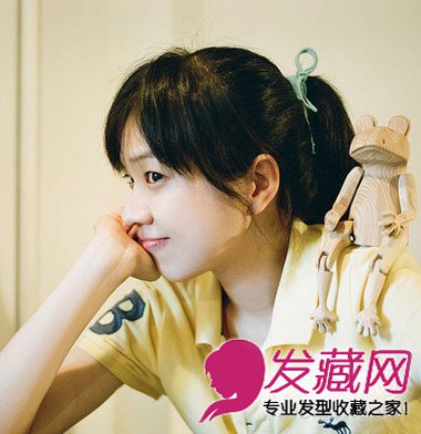 中分刘海自然黑发扎马尾辫发型,中分的刘海发型可是很考验脸型气质的哦,乌黑长发扎马尾辫,搭配柠檬黄色短袖衫,清纯的校园女生造型。