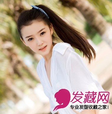 露额长直发侧扎高马尾辫发型,清甜自然的露额发型清爽又朝气,侧扎发避免简单呆板,俏皮清新。