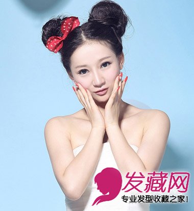 少女的清澈与个性并存,长长的的头发怎么扎都可以,两侧盘起高高的发髻,十足俏皮抢镜,配上发饰,更显少女可爱感。