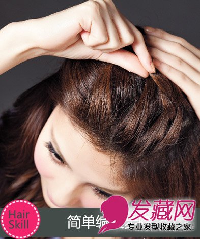 step2:一只手固定发辫,再用手指调整头顶辫子的弧度,让线条更加完美。