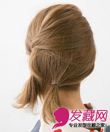 step 3:剩余的头发用橡皮筋固定,扎成马尾。