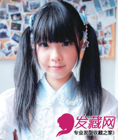 双马尾展现出女生俏皮可爱的气质,经过烫发处理的马尾发型更显时尚优雅范,齐刘海的发型设计,衬托出了女生大大的眼睛,很是漂亮迷人