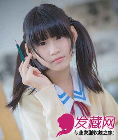 双马尾一直都是校园系女生的代表,而这款双马尾既能体现女生的清纯气质还不失可爱,搭配校服造型萌爆。