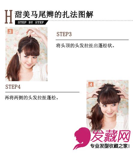 step4:再将两侧的头发拉扯蓬松。这款马尾就扎好啦。