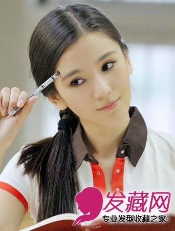 程意涵的这款斜马尾造型让她更显可爱俏皮,浅栗色的染发和蓬松感十足的卷发马尾显得动感十足,搭配上波点的黑色蝴蝶结发饰,可爱至极。清纯的低马尾造型,马尾搭在肩前,露额的发型让mm看上去清爽利落,纯美非常。