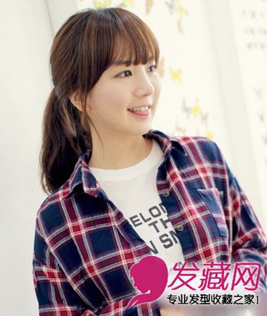 长直发高扎马尾辫造型,很适合小清新范儿的MM打造,高扎发辫显清爽干练气质,搭配清新的衣饰甜美可爱。