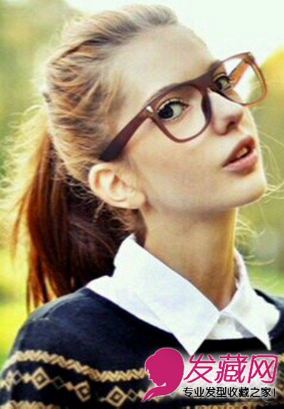 将所有发丝束成一个不高不低的马尾,露出精致的五官,佩带一副宽框眼镜,顿时充满学院风。