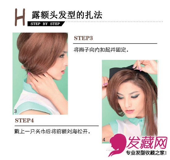 step4:戴上头巾后将前额的刘海轻轻拉扯出几许。